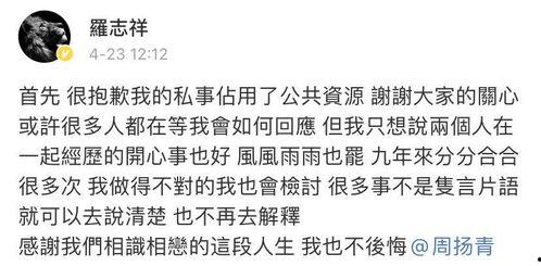 这起罗志祥事件可谓是娱乐圈的一股“清风”,让网友们重新审视了明星的生活。虽然我们无法改变娱乐圈的现状,但我们可以从这次事件中汲取教训,珍惜自己的私生活,同时,也希望有关部门能够加强监管,还娱乐圈一个清朗的天空。兄弟们,你们怎么看呢?快来评论区一起聊聊吧!